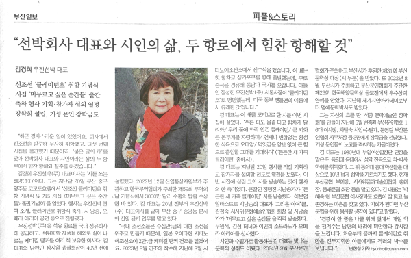 [부산일보] 동양꽃꽂이 명장 김경희, 선박회사 대표와 시인의 삶, 두 항로에서 힘찬 항애할 것