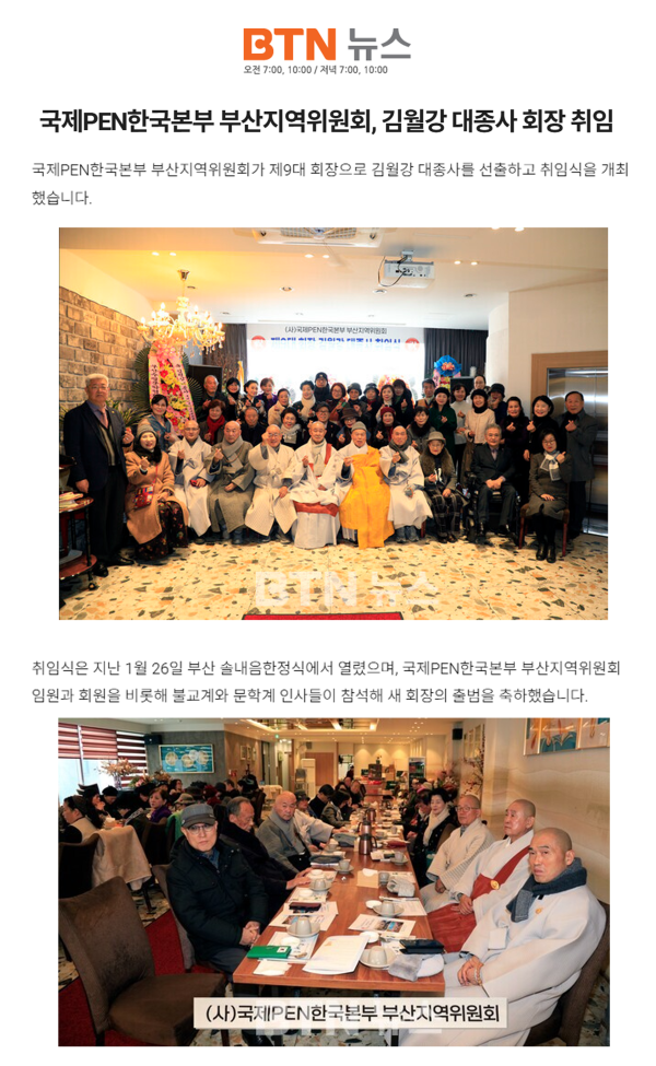 [BTN뉴스] 국제PEN한국본부 부산지역위원회, 김월강 대종사 회장 취임