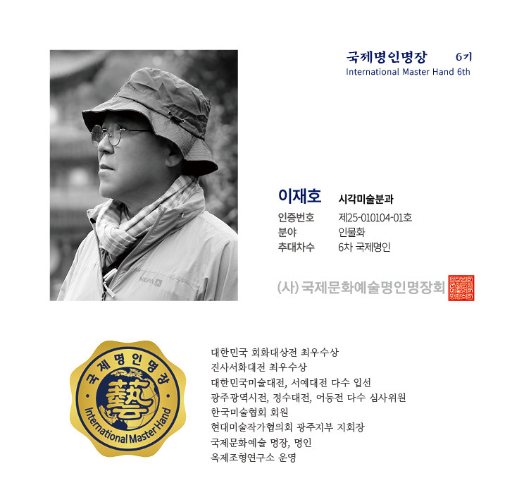 and the Eodeung Exhibition. He serves as the Branch President of the Gwangju Chapter of the Contemporary Art Artists Association and holds membership in the Korean Fine Arts Association.