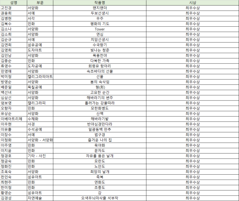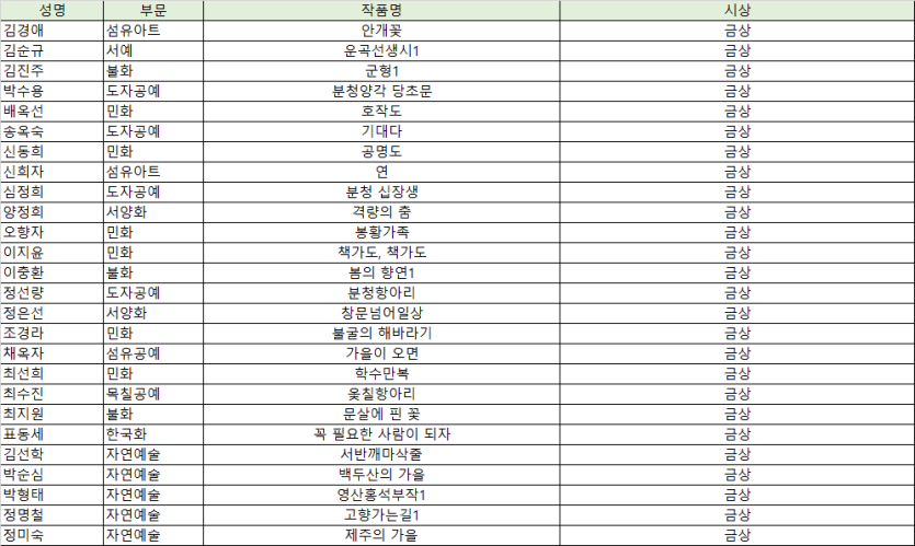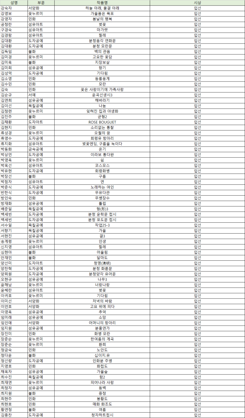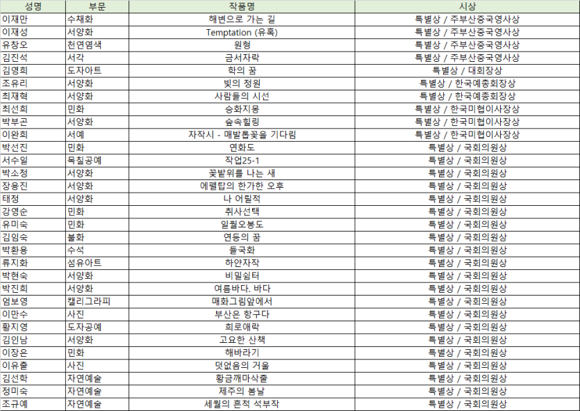 단, 입선과 특선은 전시는 안하지만 시상은 합니다.