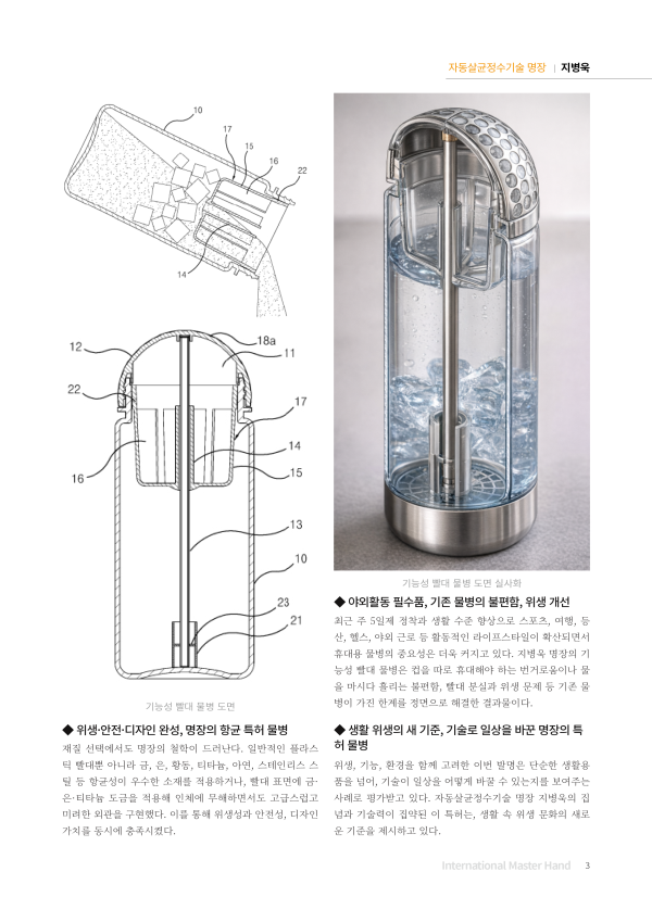 기능성 빨대 물병 / 자동 살균기능 휴대용 물병 자동 살균 필터샤워기 / 살균기능 필터 샤워기 특허증