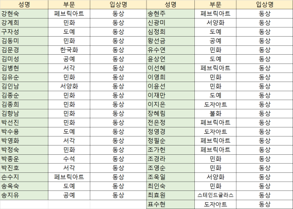 제 19회 국제종합예술대전 최종 심사 발표 - 특선