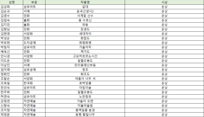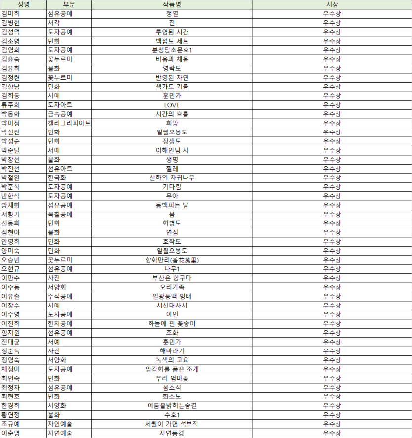 단, 입선과 특선은 전시는 안하지만 시상은 합니다.