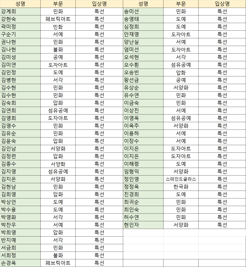 제 19회 국제종합예술대전 최종 심사 발표 - 특선